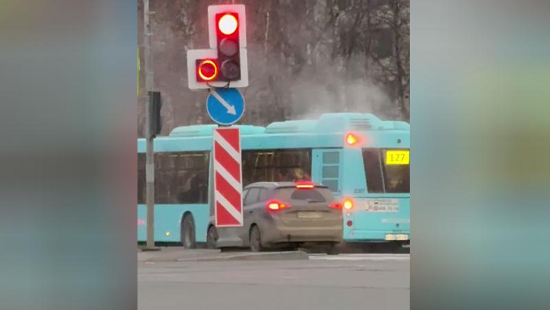В Петербурге на проспекте Испытателей задымился лазурный автобус. Об этом 78.ru стало известно от очевидцев.