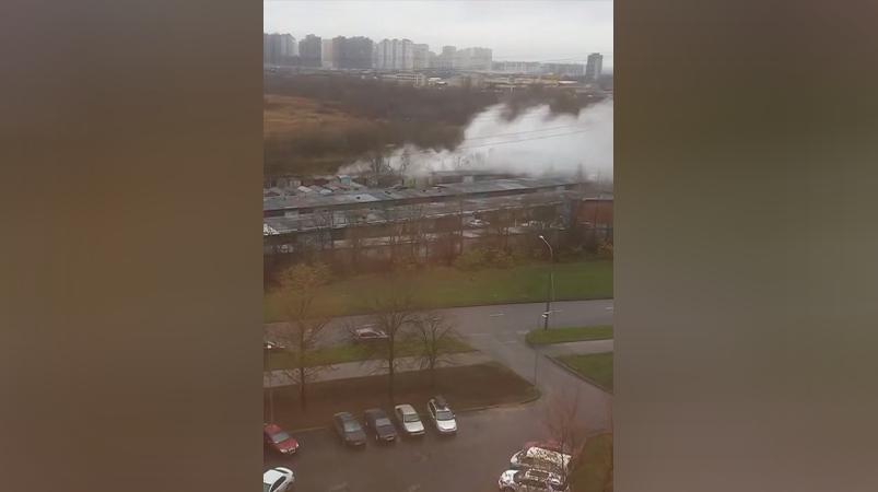 Облако пара тянет в сторону станции метро «Купчино».