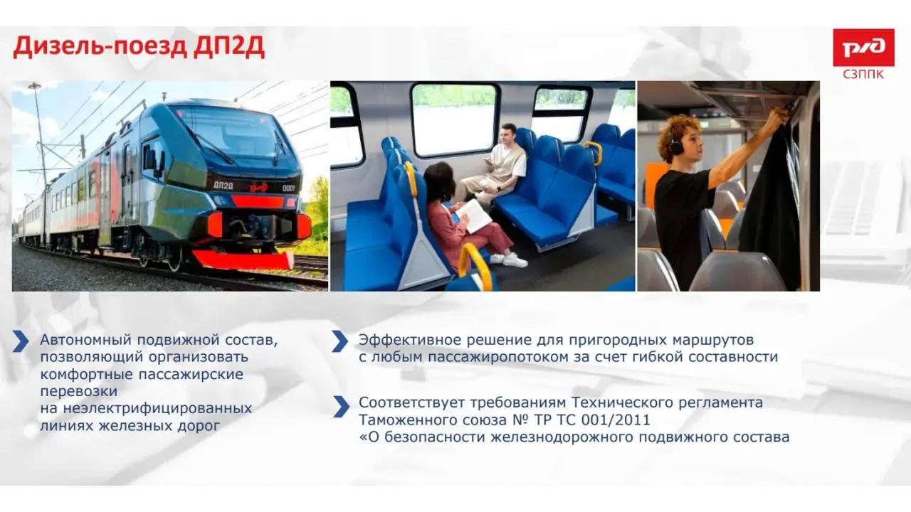 Новый дизель-поезд ДП2Д выйдет на направление Петербург — Кингисепп — Ивангород уже в 2026 году. Состав из шести вагонов на 636 сидячих мест заменит трёхвагонный, который эксплуатируют на направлении в настоящий момент.