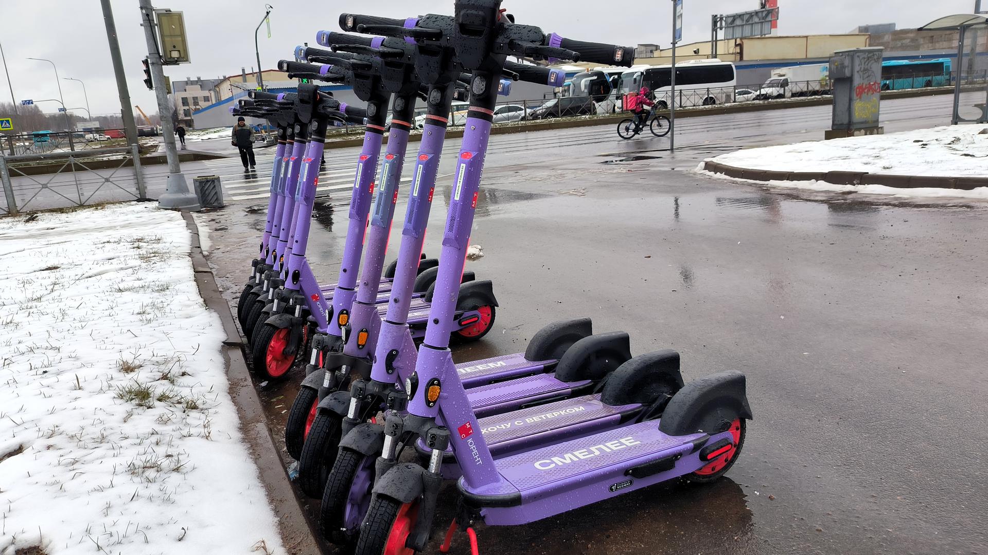 Электросамокаты покидают улицы Петербурга и отправляются на зимовку