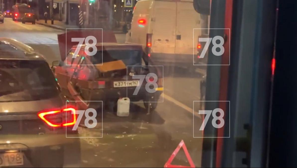 Из-за столкновения на Петергофском шоссе образовалась пробка.