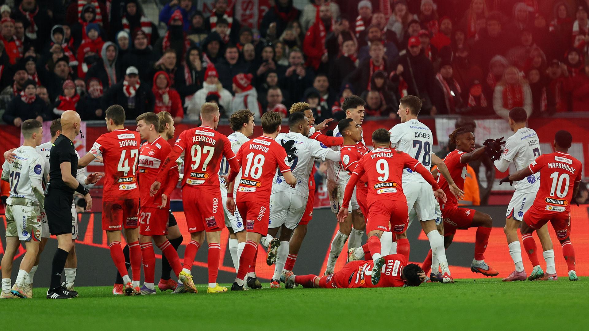 — Рассмотрели все видеоматериалы по данному инциденту, ознакомились с решениями судебных органов. Кроме того, определяли принадлежность болельщика к клубу, — сказал Григорьянц. — Установили, что зачинщиком драки был болельщик ЦСКА, он провоцировал болельщиков «Спартака». Учитывая все обстоятельства, «Спартак» за необеспечение безопасности, повлекшее нарушение зрителями общественного порядка, поставившее под угрозу безопасность находящихся на стадионе, а также за неправомерные действия зрителей — штраф 800 тыс. рублей. За скандирование болельщиками ненормативной лексики — 200 тыс. рублей.