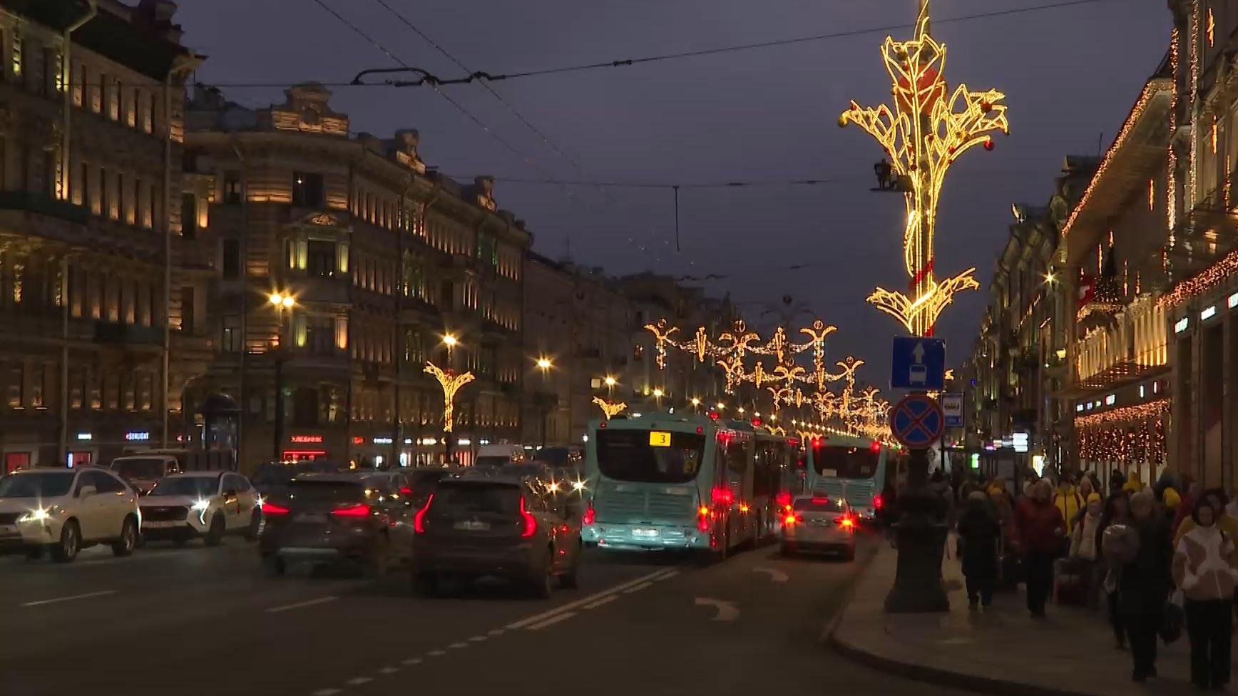 Новогоднюю подсветку включили на Невском проспекте