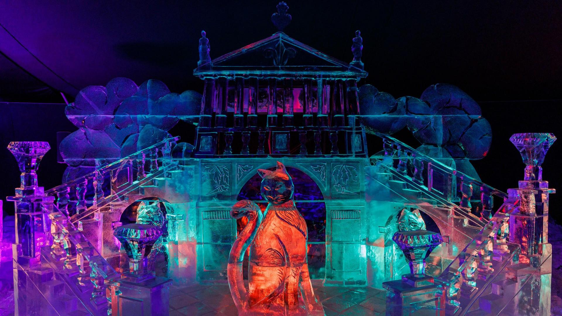 С начала декабря мастера трудятся в специально оборудованном павильоне с постоянной минусовой температурой. Им предстоит обработать свыше 200 тонн чистого речного льда, доставленного из Мурманской области и Пермского края. Заготовка и транспортировка льда, особенно в оттепели, — сложный процесс. Для скульптур используется только озерный лед, обеспечивающий идеальную прозрачность и чистоту. Создание одной скульптуры занимает около трех недель.