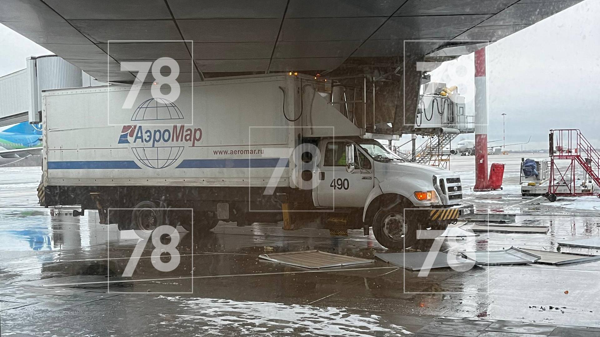 В Пулково грузовик компании бортового питания снёс «ротонду» у 16-го выхода. Об этом 78.ru сообщили очевидцы.