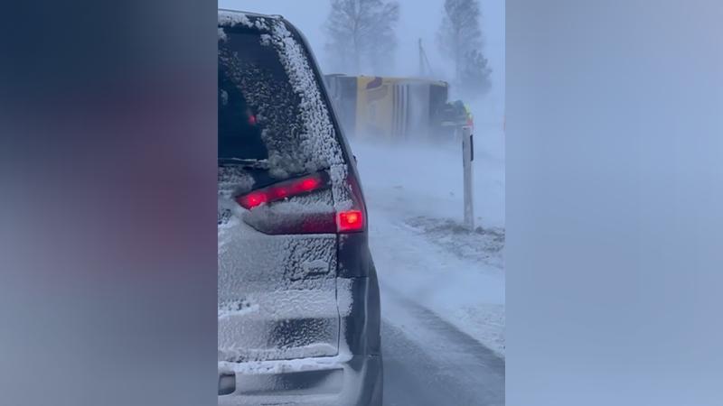 На эстонской границе сильный ветер опрокинул автобус