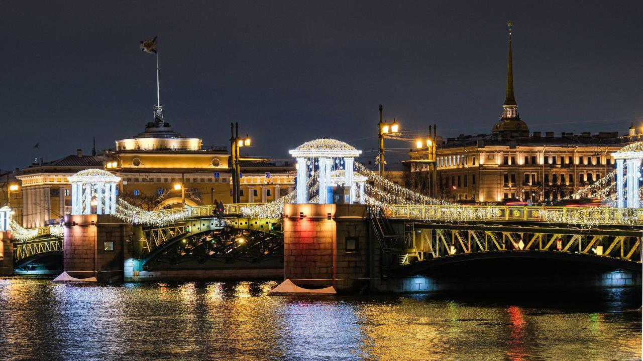 В Рождественский сочельник Дворцовый и Троицкий мосты озарит золотистая подсветка