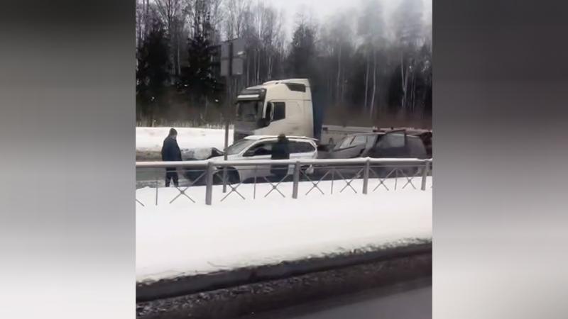 Ранее 78.ru писал, что на Планерной улице грузовик вытолкнул на тротуар две легковушки.