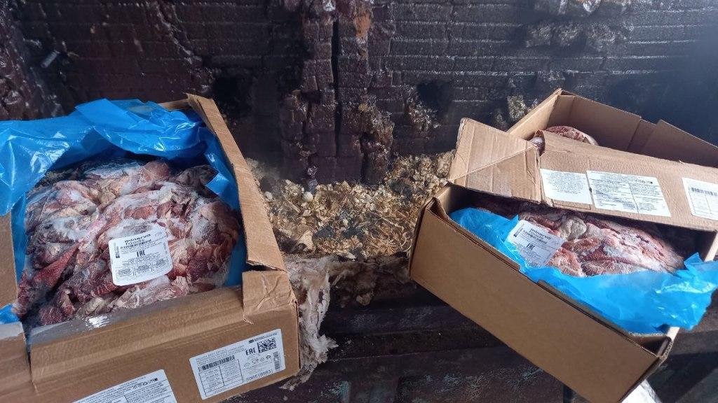 При досмотре груза выяснилось, что на две коробки мяса не были оформлены ветеринарные сертификаты. Товар сожгли в печи.