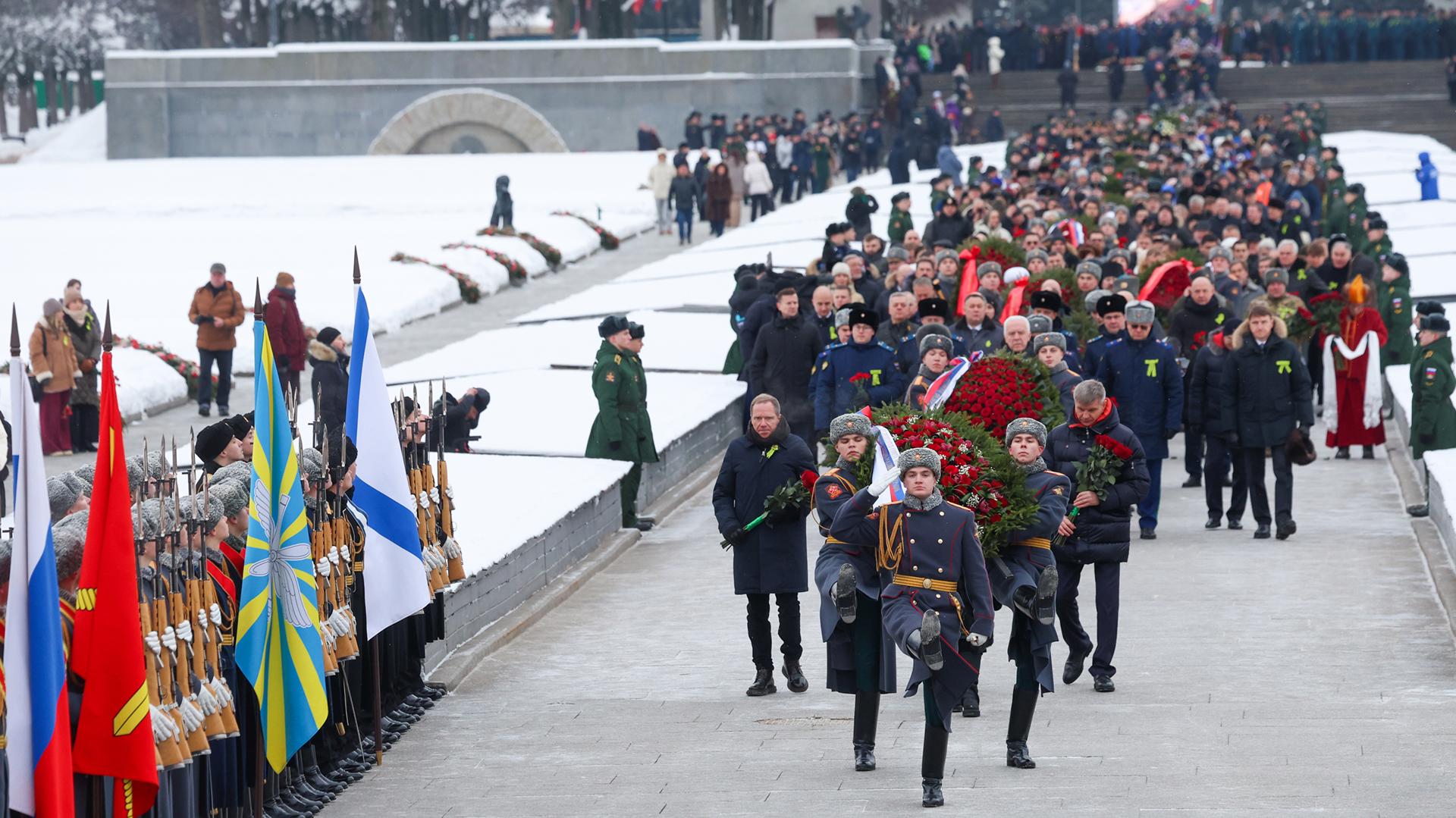 Губернатор Петербурга Александр Беглов возложил цветы к монументу «Мать-Родина» на Пискаревском кладбище в День полного освобождения Ленинграда от фашистской блокады.