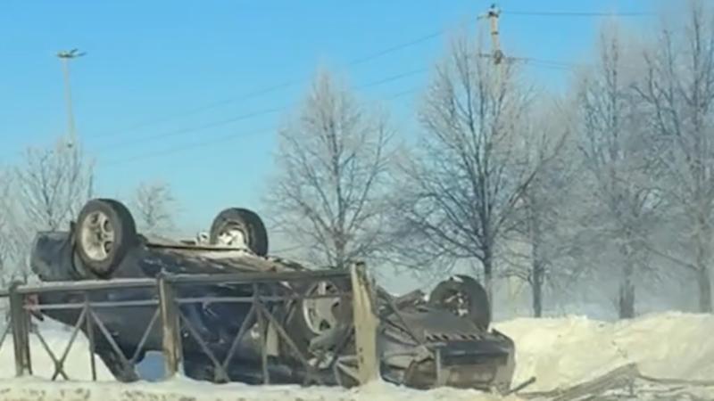 Перед поворотом на КВЦ «Экспофорум» перевернулся легковой автомобиль