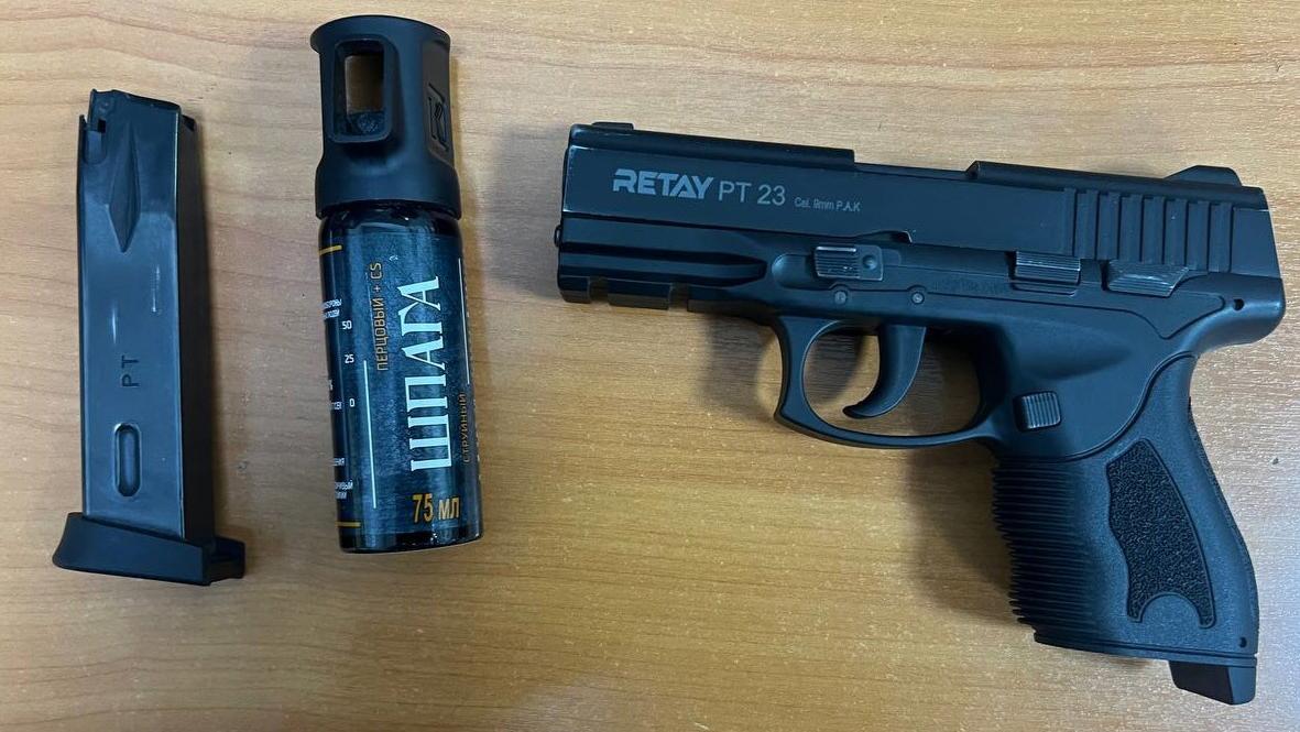 Грабителя оперативно поймали, у него изъяли похищенные товары, сигнальный пистолет «Retay PT23» и газовый баллончик.