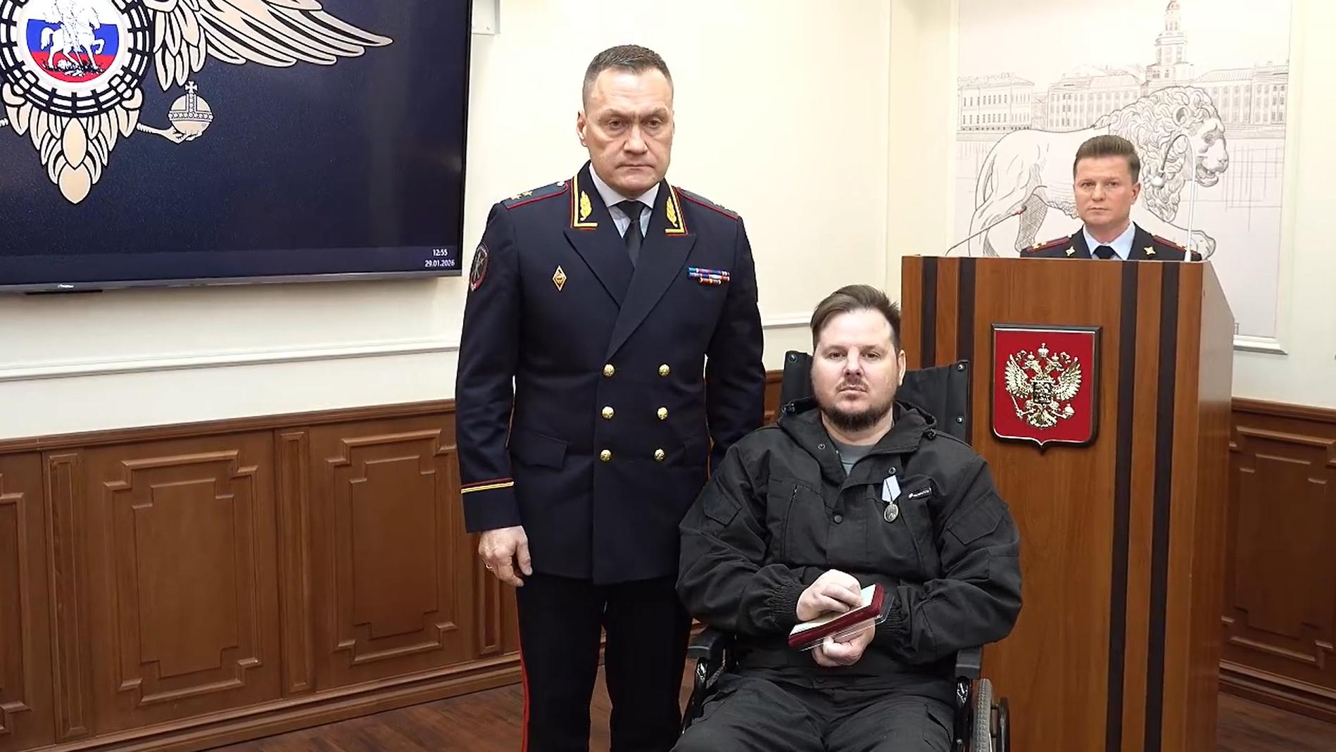 Медалью «За отвагу» награждён старший сержант полиции в отставке Артур Бардаков. В апреле 2024 года он в составе патрульного наряда прибыл по вызову на Английский проспект в Петербурге, где мужчина угрожал покончить с собой. При попытке задержания подозреваемый открыл стрельбу. Артур Бардаков, рискуя жизнью, попытался обезоружить нападавшего и получил серьёзное огнестрельное ранение позвоночника. В настоящее время он находится на лечении и проходит реабилитацию.