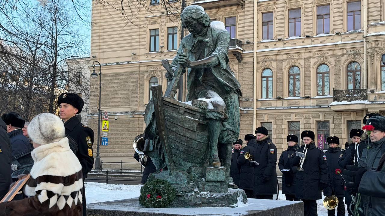 У памятника Царю Плотнику на Адмиралтейской набережной состоялась торжественная церемония возложения цветов. Мероприятие приурочено к годовщине получения Петром I патента кораблестроителя.
