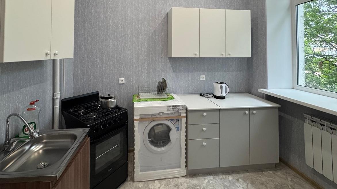 Каждая квартира укомплектовывается 22 предметами первой необходимости, включая кухонный гарнитур, диван, холодильник и стиральную машину.