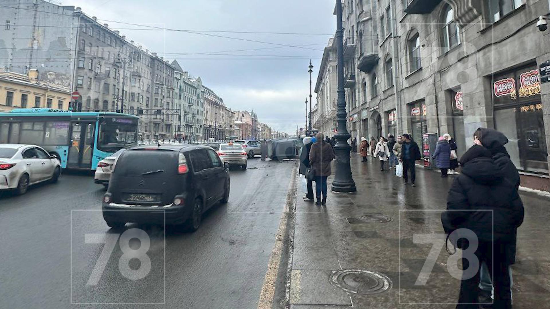 Каршеринг перевернулся после столкновения с такси на Лиговском