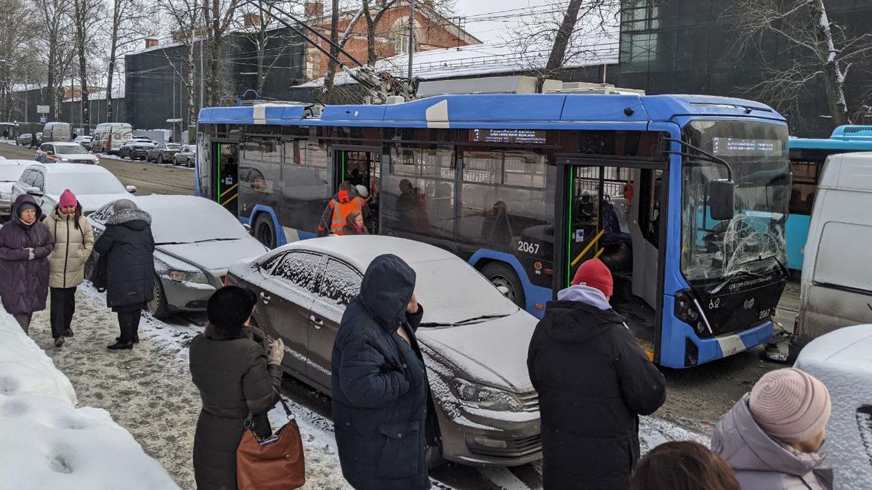 На улице Комсомола произошло массовое ДТП с троллейбусом
