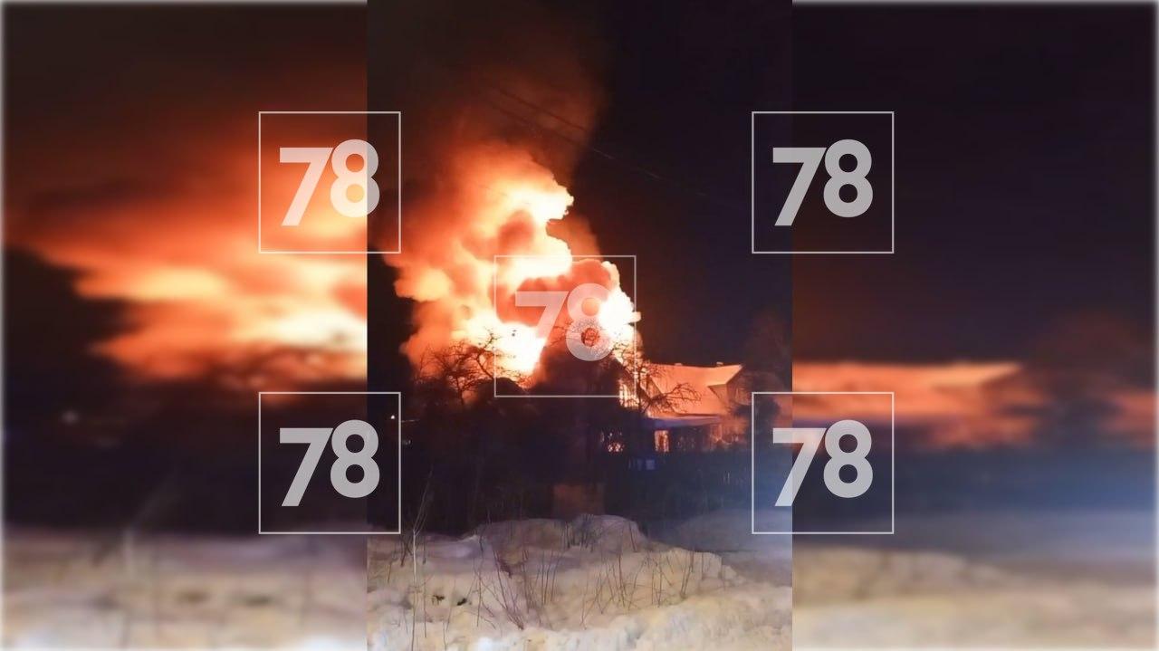 Сильный пожар разгорелся сегодня ночью в Мартышкино — огонь охватил частный дом на улице Дюма. Кадрами полыхающего здания с 78.ru поделились очевидцы.