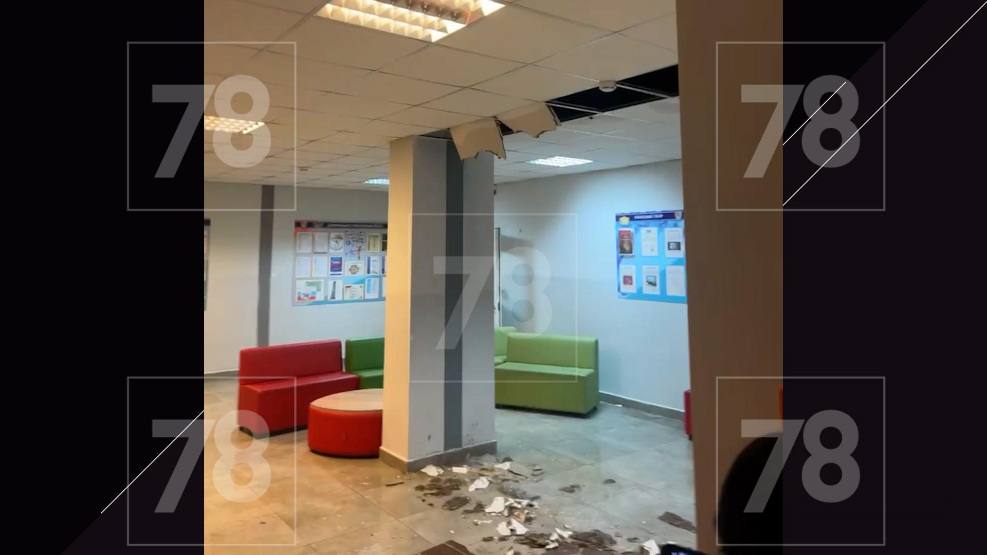 В Мурино в школе из-за протечки теплоносителя обрушилась часть потолка