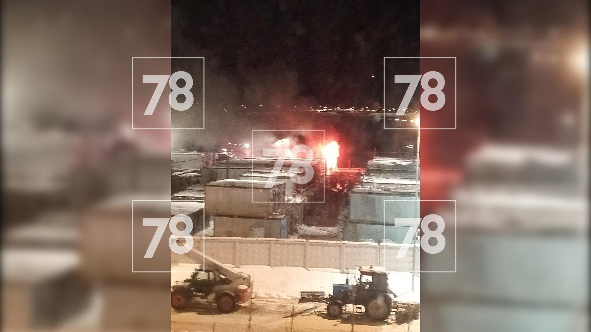 Пожар произошел ночью на Колпинское шоссе, 129. В пяти бытовках происходило горение на площади 40 кв. м.