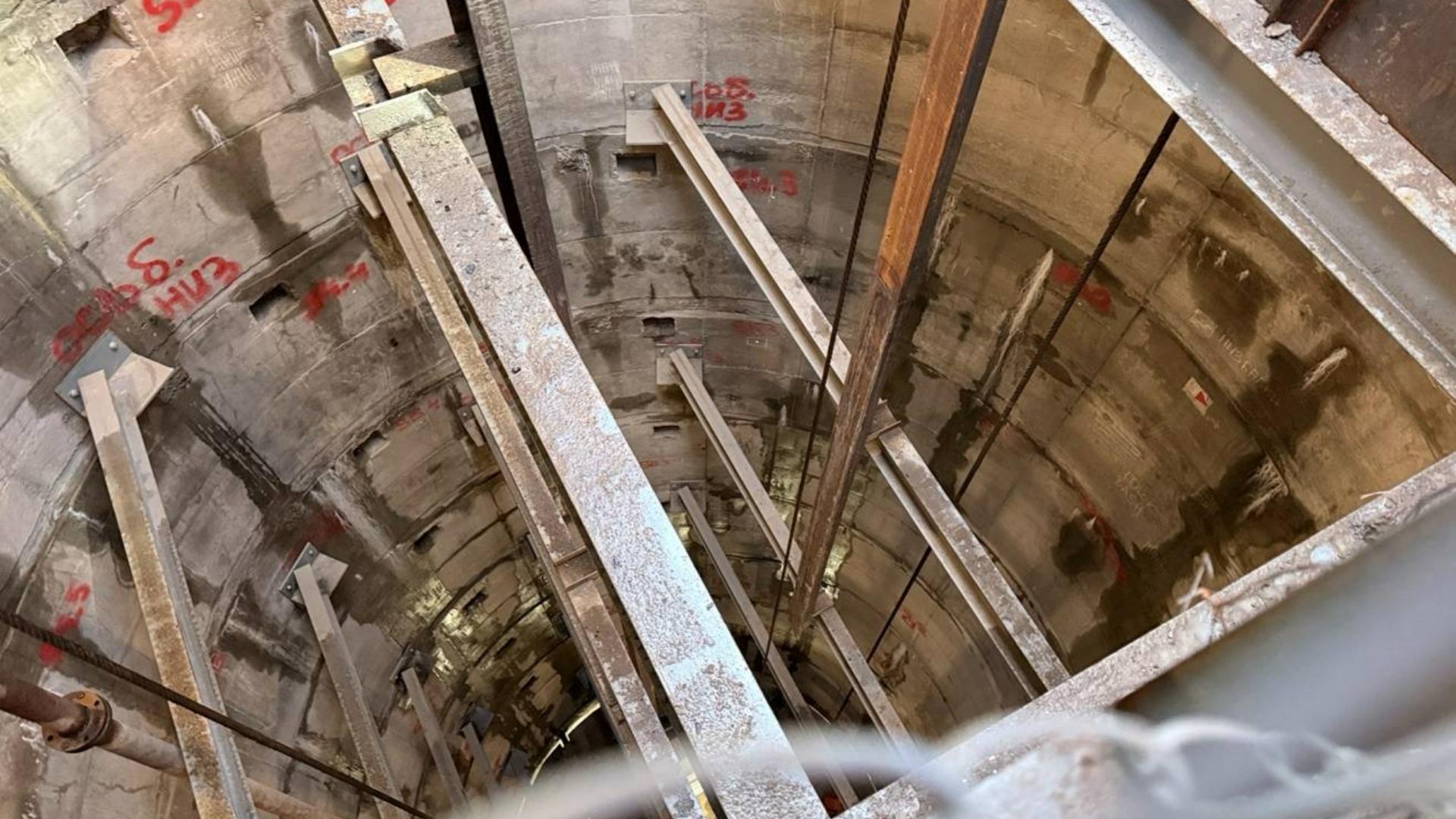 На данный момент пройдено 20 заходок из проектных 31. Рабочие приступили к оборудованию горного комплекса. После завершения проходки монолитного участка начнется проходка участка из 18 колец. Там будет сооружена рассечка для начала строительства рудничного двора и всех горизонтальных выработок.