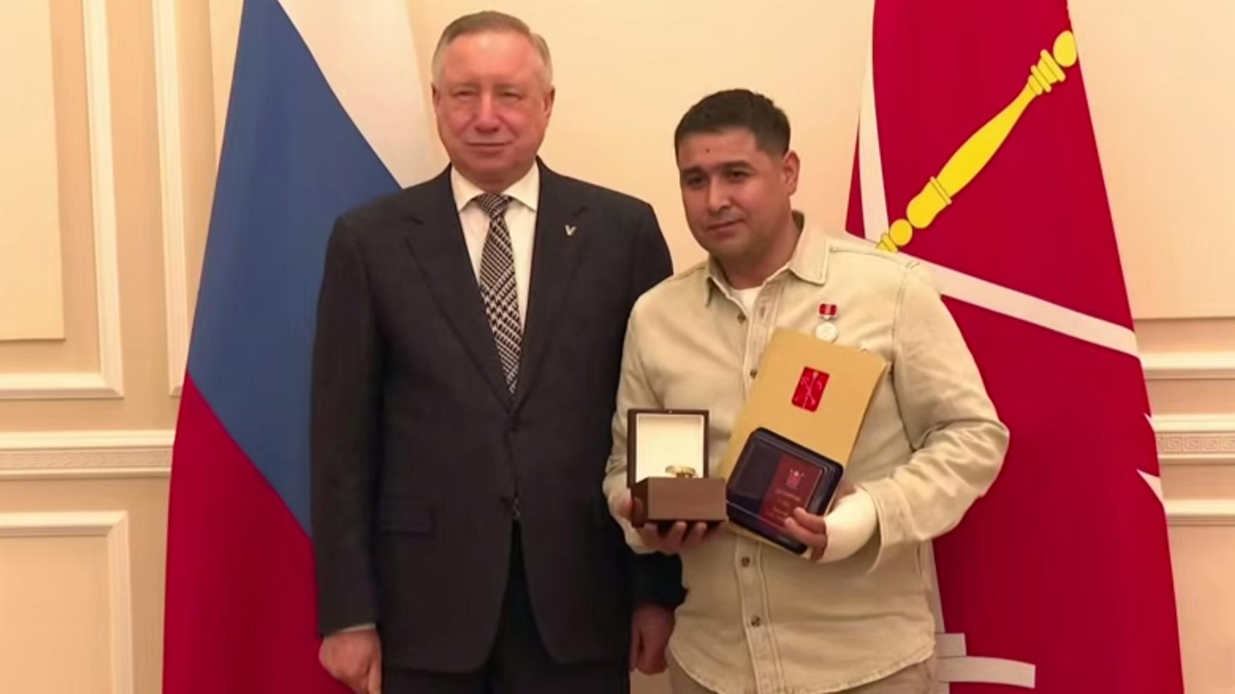 Губернатор Петербурга Александр Беглов наградил дворника Хайрулло Ибадуллаева, который спас выпавшего из окна ребенка на Петрозаводской.