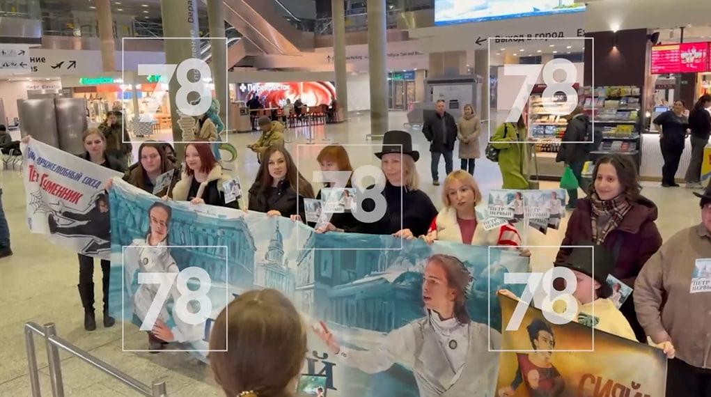 Фанаты действующего чемпиона России в мужском одиночном катании и уроженца Петербурга Петра Гуменника приехали в Пулково, чтобы встретить любимого спортсмена.Они развернули плакаты и растяжки, где присутствуют слова поддержки знаменитого фигуриста.