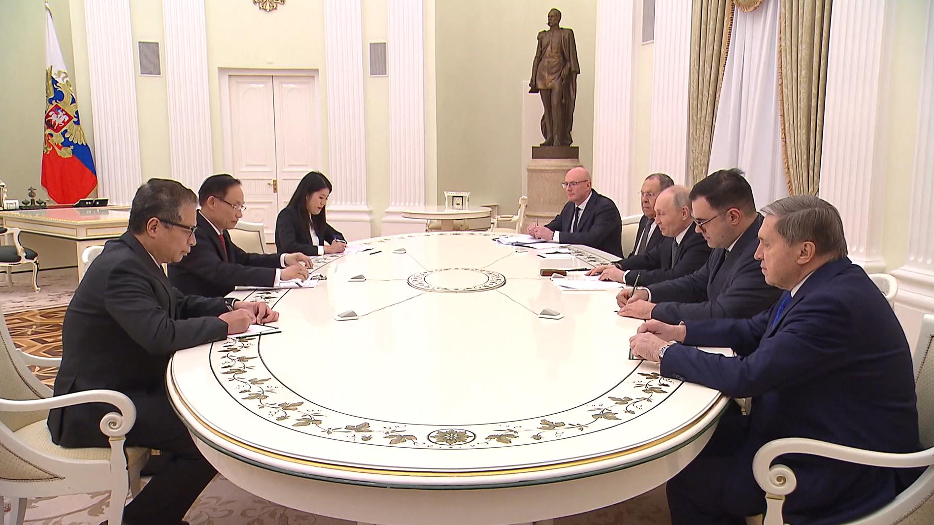 Во встрече также приняли участие Министр иностранных дел Сергей Лавров, Заместитель Председателя Правительства, сопредседатель Межправительственной российско-вьетнамской комиссии по торгово-экономическому и научно-техническому сотрудничеству Дмитрий Чернышенко и помощник президента Юрий Ушаков.
