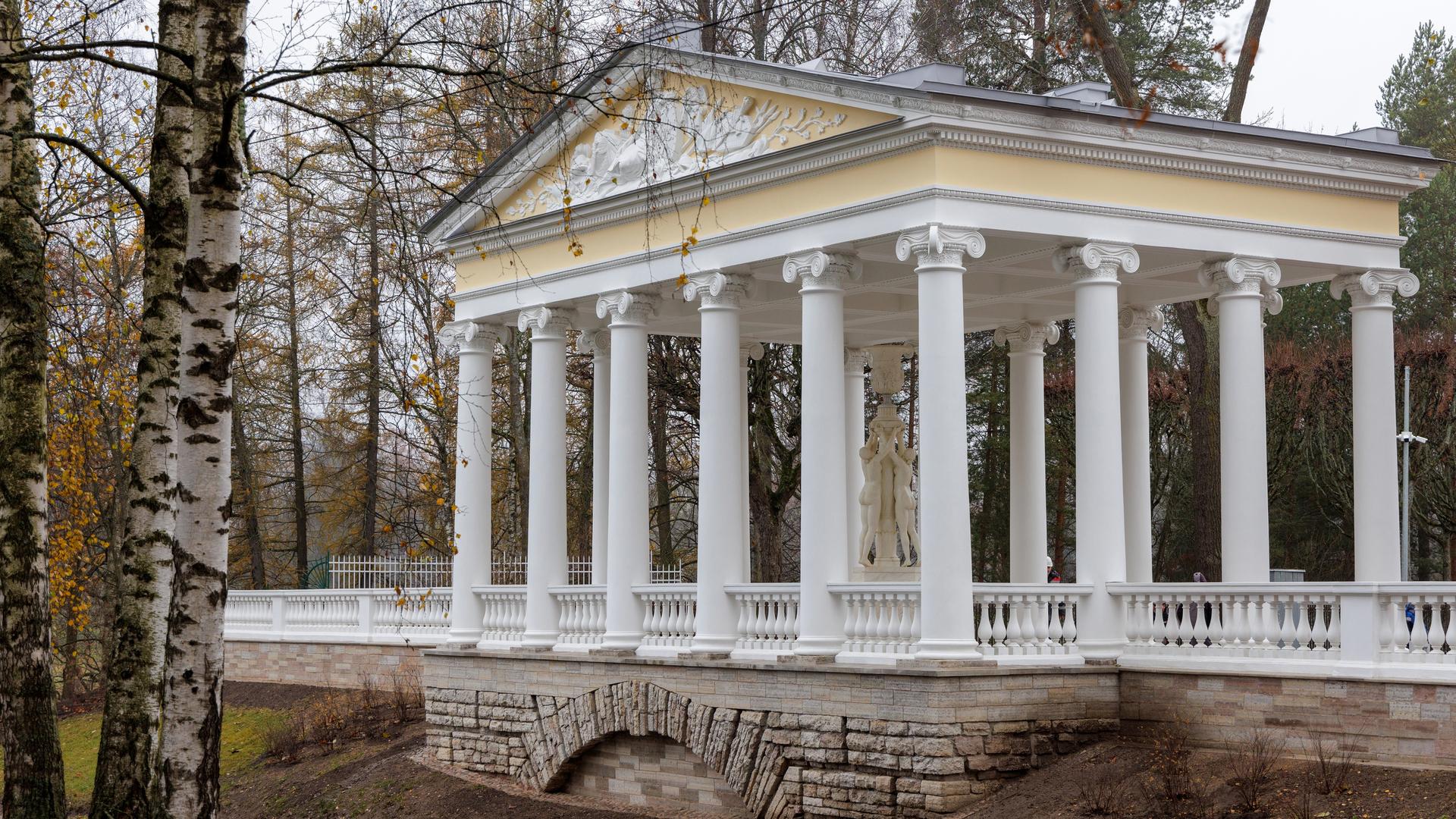 Музей-заповедник «Павловск» сообщил о завершении реставрации одного из своих знаковых объектов — павильона «Трёх граций», построенного в 1800 году на террасе Собственного садика по проекту Чарлза Камерона.