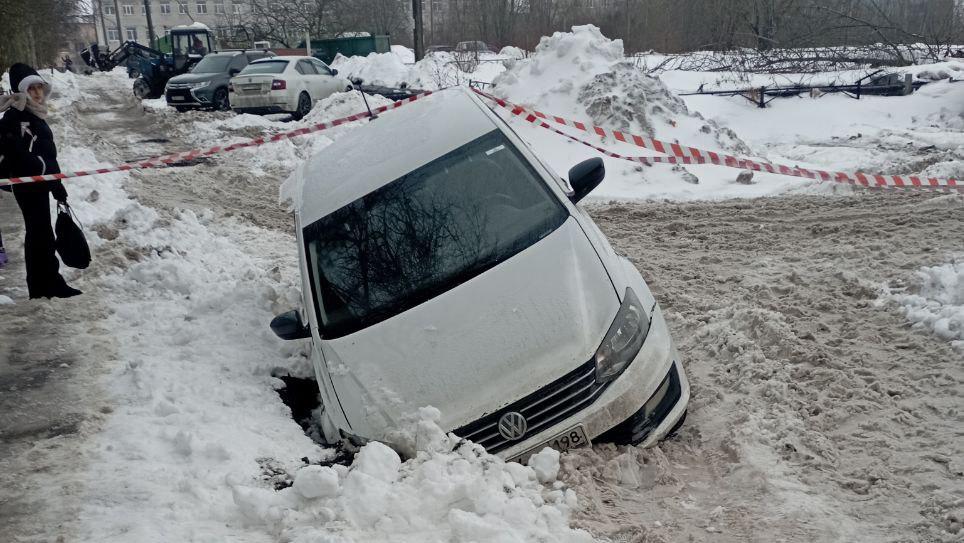 Автомобиль провалился в яму на Геологической улице