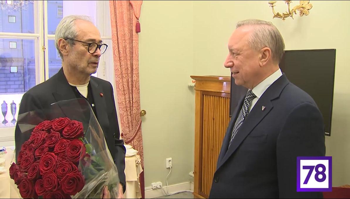 Во время общения с Фокиным губернатор вручил народному артисту цветы, а также вспомнил о том, что Фокин стал руководить Александринским театром в 2003 году. Тогда Северная столица отмечала 300 лет со дня своего основания.