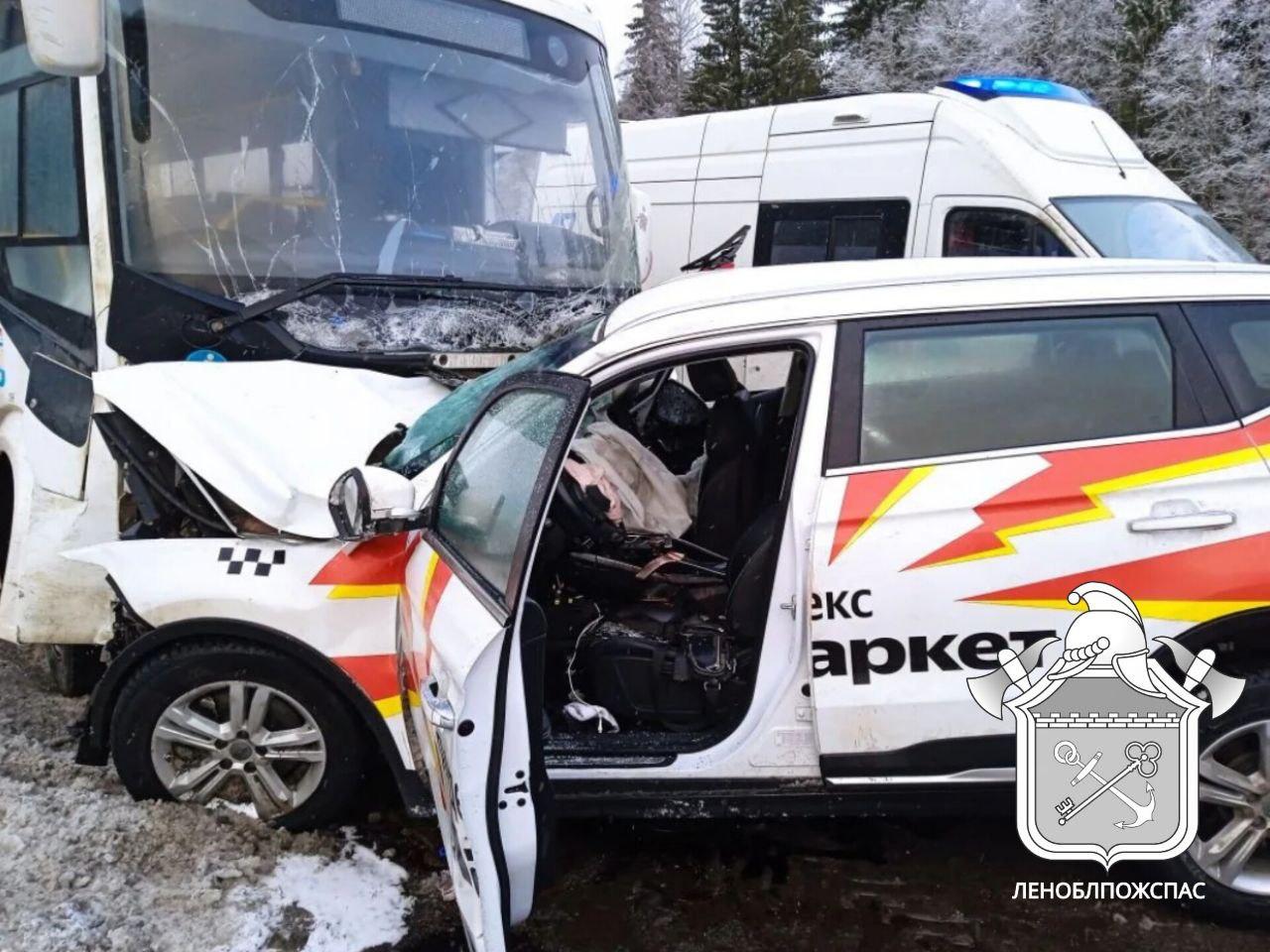 Около 8 часов утра 3 марта на пульт Леноблпожспас поступило сообщение о ДТП в Волосовском районе. На 66-м километре трассы А-180 «Нарва» столкнулись автобус № 888 и такси Chery Tiggo.