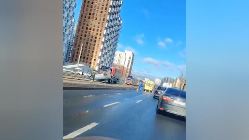 Легковушка перевернулась на трамвайных путях на Дальневосточном