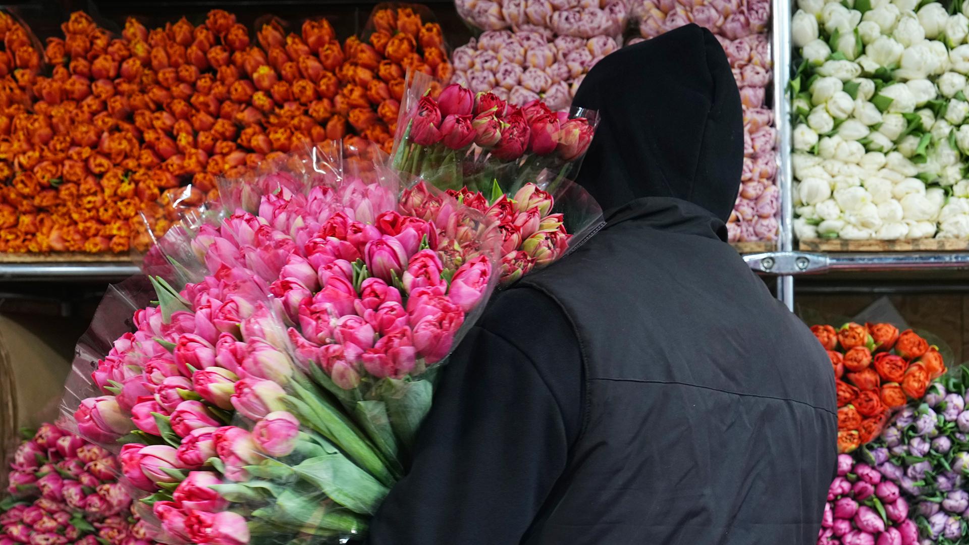 Стоимость готовых букетов не изменилась. Например, в прошлом году в пересчёте на штуки один тюльпан обходился в 80–100 рублей. Сегодня букет из 15 тюльпанов можно найти в продуктовом магазине за 1199 рублей по скидочной карте.
