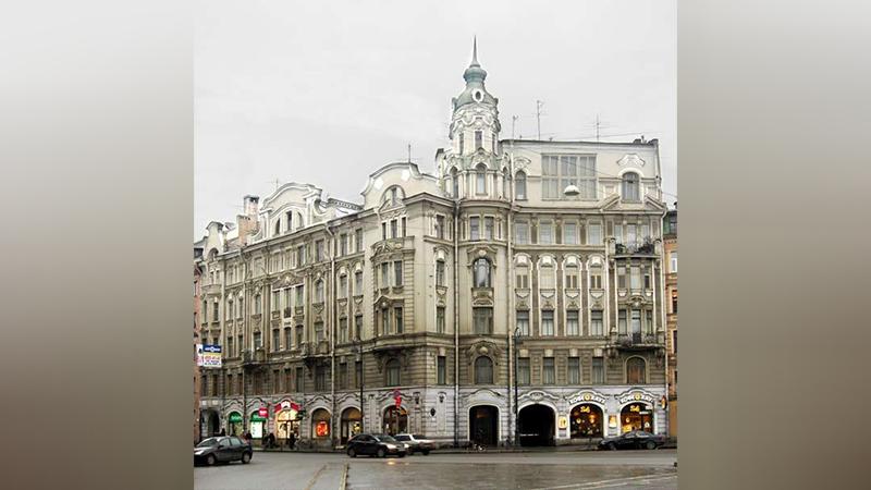 Здание в стиле модерн построено в 1906 году по проекту архитектора Василия Шауба. Огромное многометровое окно с видом на Австрийскую площадь и Каменноостровский проспект, зал с колоннами, овальный кабинет и уединенная башня с круглыми окнами — подобной квартиры-памятника в Петербурге нигде не сыщешь.