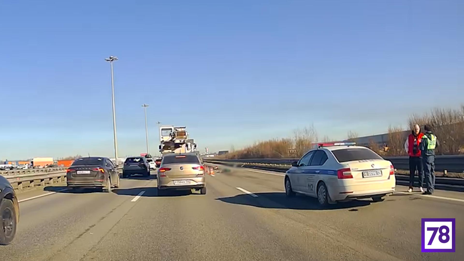 В субботу утром на Кольцевой автодороге Петербурга сбили насмерть человека.