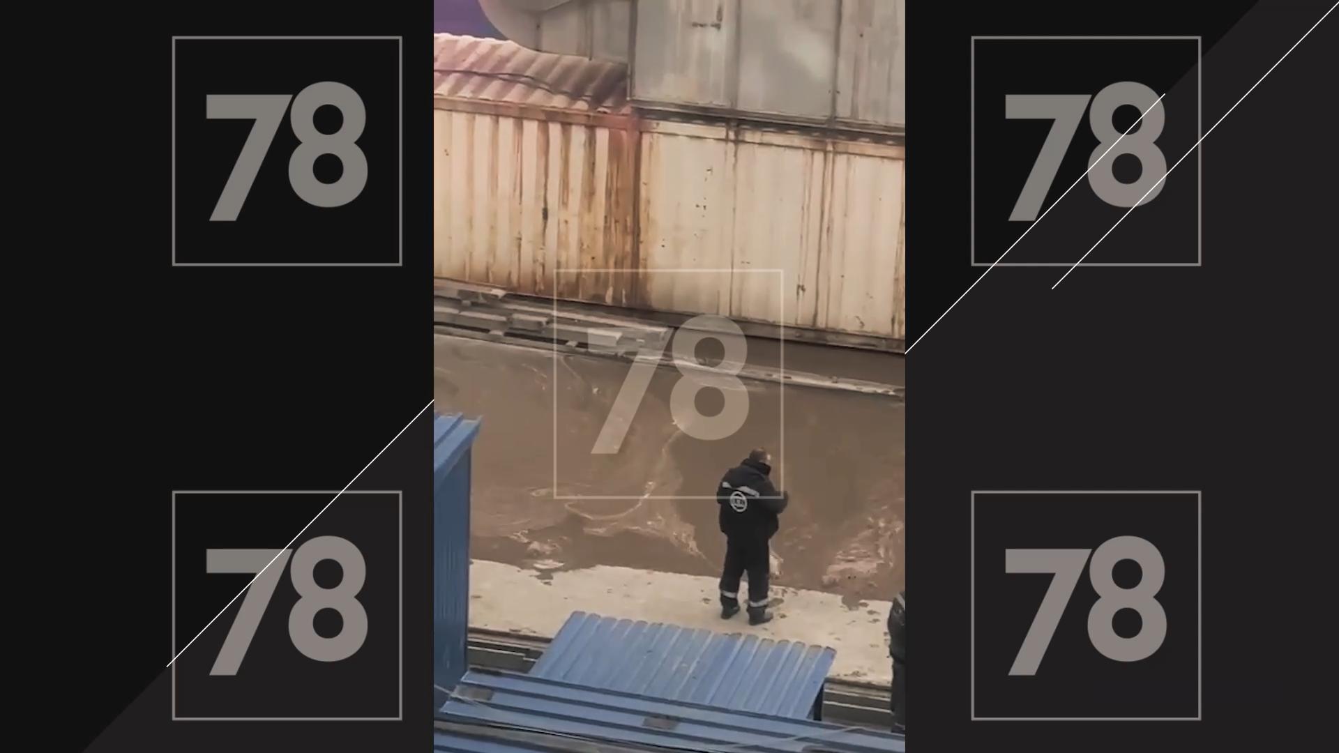 На пересечении улиц Оптиков и Туристской в Приморском районе Петербурга вода стремительно заливает стройплощадку. Богатырская улица тоже уходит под воду.