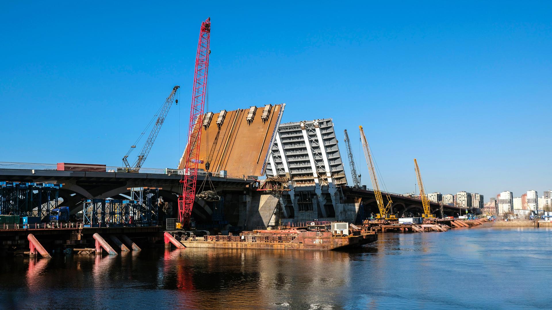 По словам Александра Беглова, после того, как «крылья» нового моста поднимут на 72 градуса, их зафиксируют в раскрытом положении примерно на месяц.