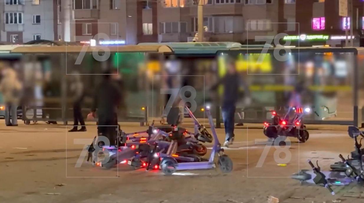 Вечером 9 апреля у станции метро «Комендантский проспект» группа подростков решила проверить на прочность припаркованные неподалеку электросамокаты.