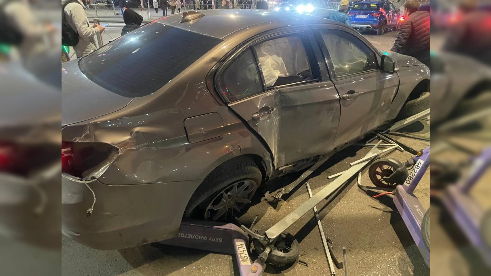 По словам очевидцев, каршеринг поворачивал с проспекта Авиаконструкторов на Плесецкую улицу, однако на светофоре его «догнал» BMW. В итоге с управлением не справился ещё один участник движения: его автомобиль развернуло, и он вылетел на пешеходную зону, пробив ограждение.