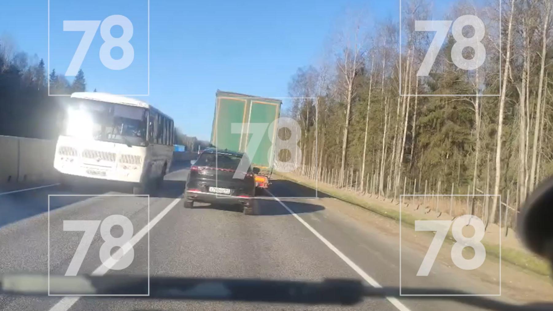 В распоряжении 78.ru появился момент столкновения фуры, микроавтобуса и двух легковушек в Тосненском районе Ленобласти на автодороге А-120.