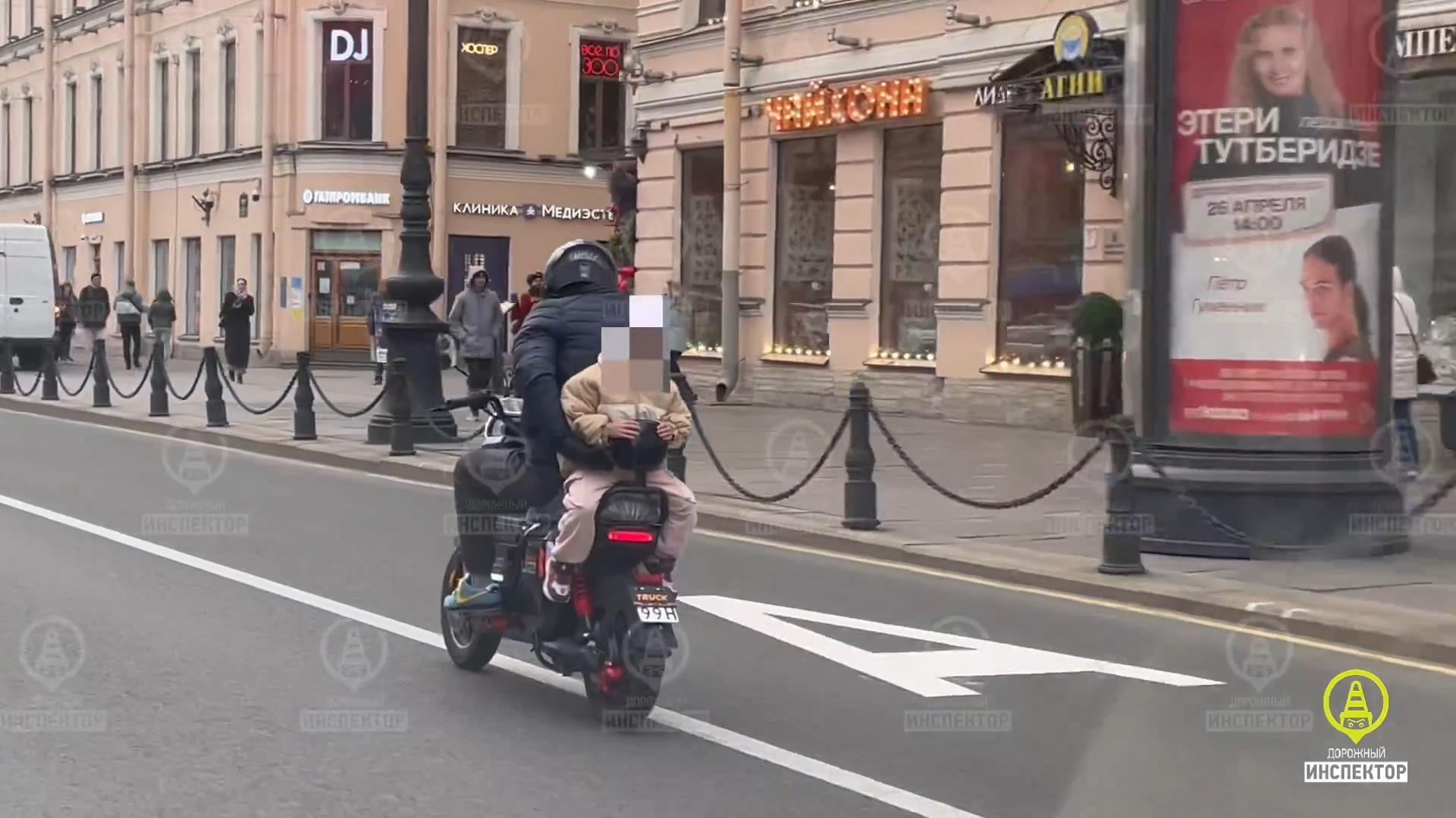 Ребёнок вместо руля: мотоциклист вёз малыша, держа его одной рукой, на Невском