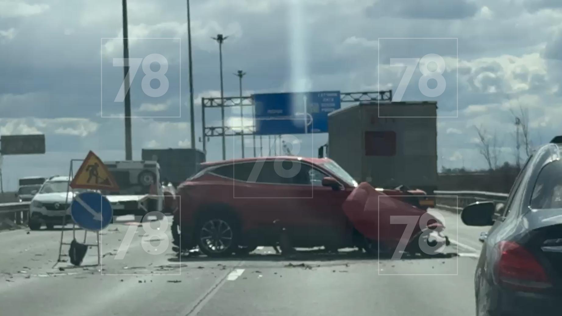 По данным 78.ru, в трактор въехала легковушка, после чего в аварию попала ещё одна машина.