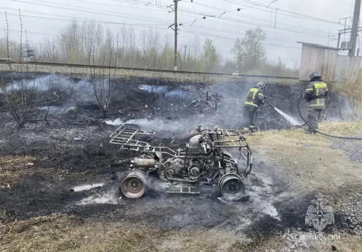 В Киришах из-за замкнувшейся проводки до остова выгорел квадроцикл