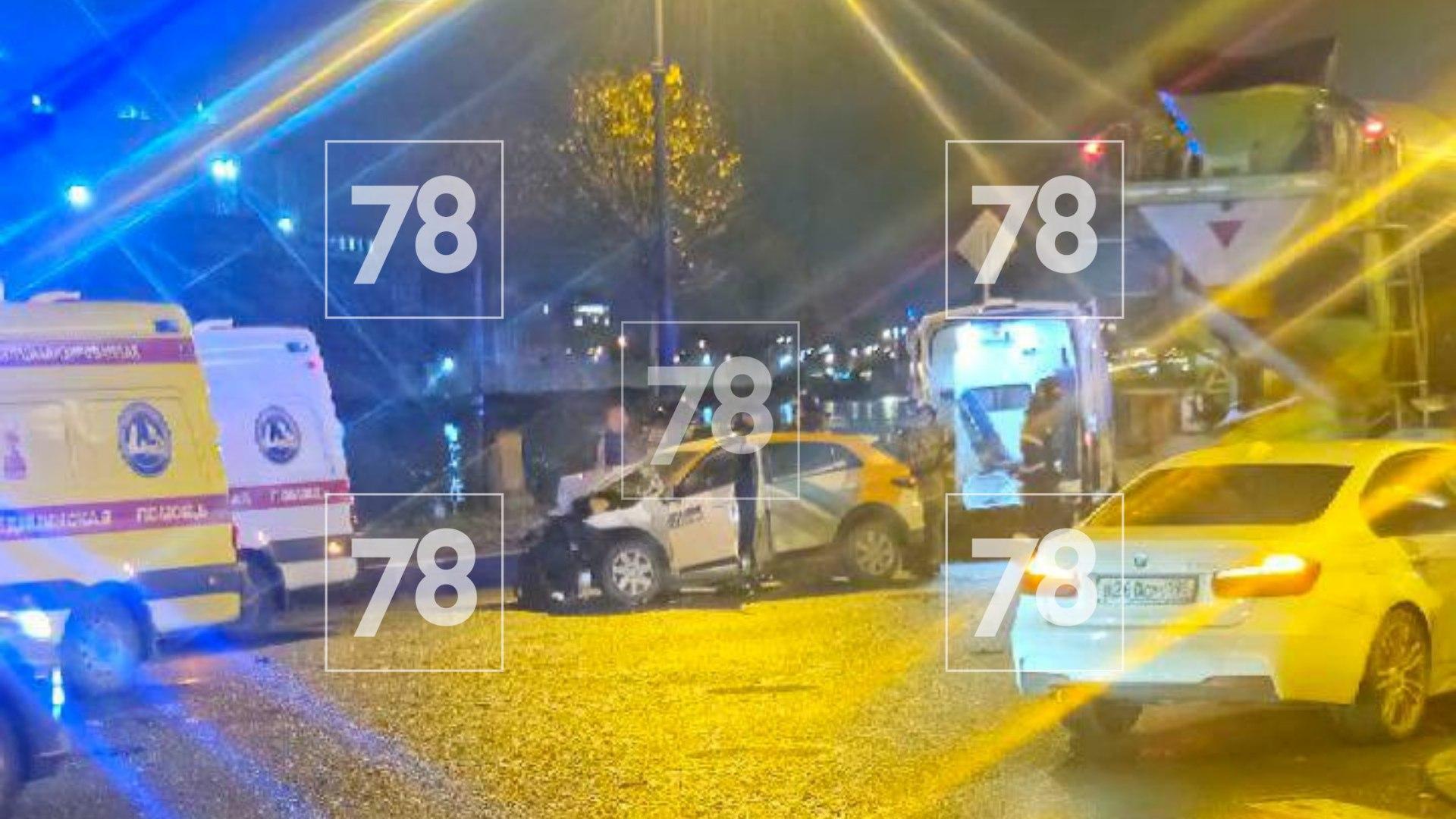 Такси, каршеринг и легковушка столкнулись на улице Карбышева в Петербурге