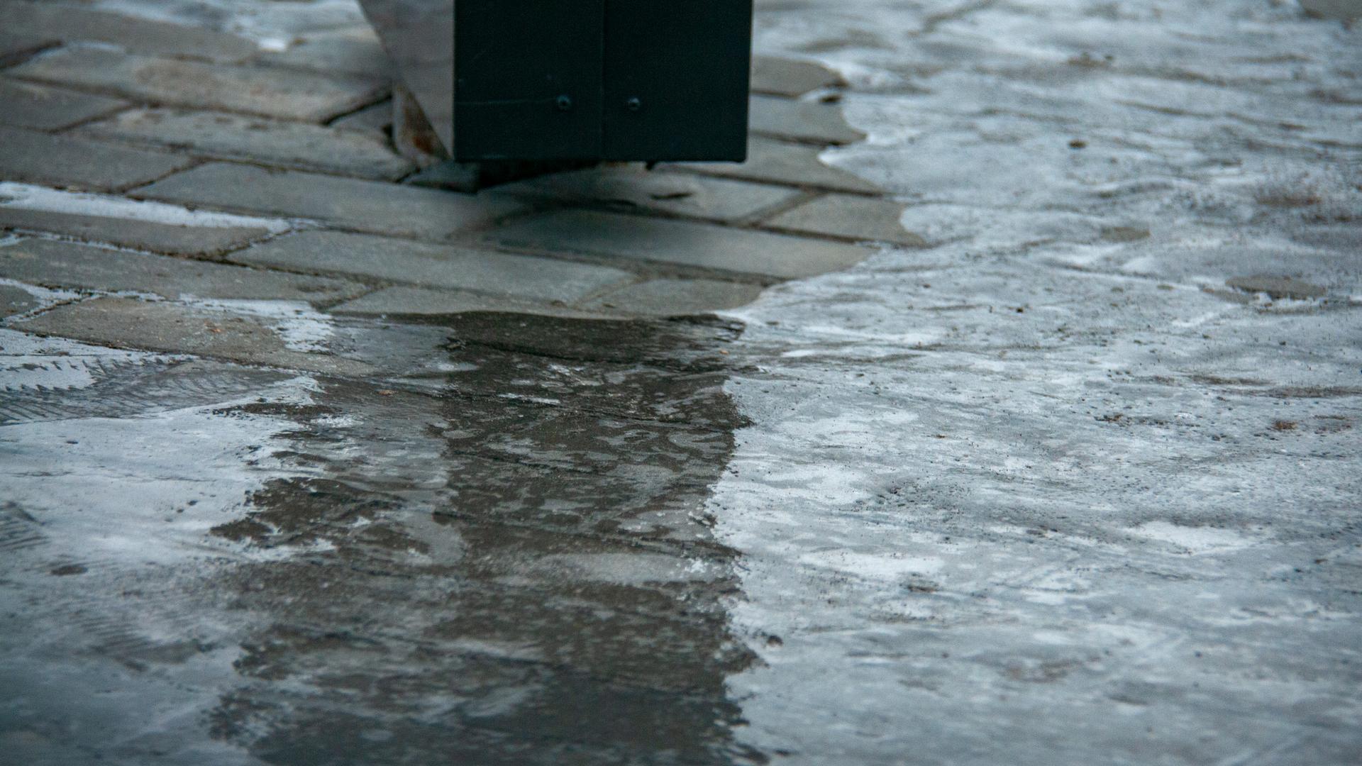 На дорогах и тротуарах города — гололедица.