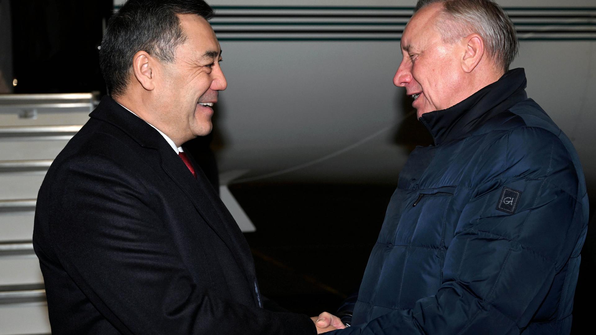 Жапарова встретили губернатор Беглов и другие официальные лица.