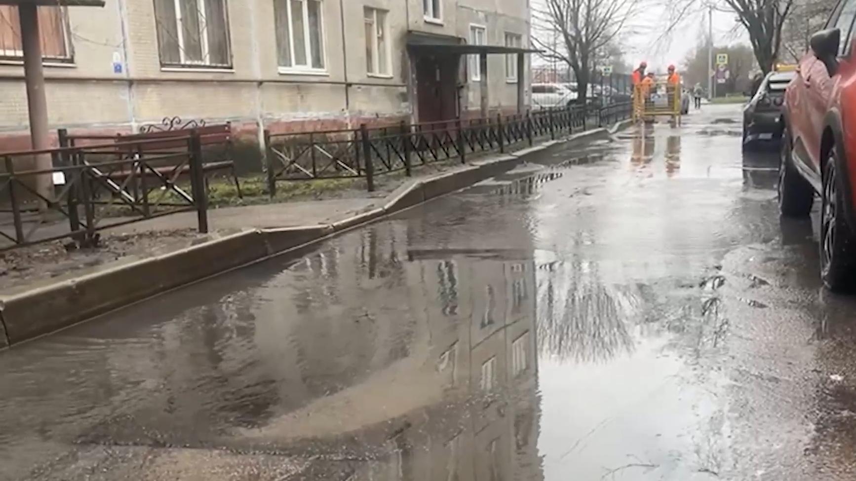 Прорыв трубы произошёл на улице Кораблестроителей